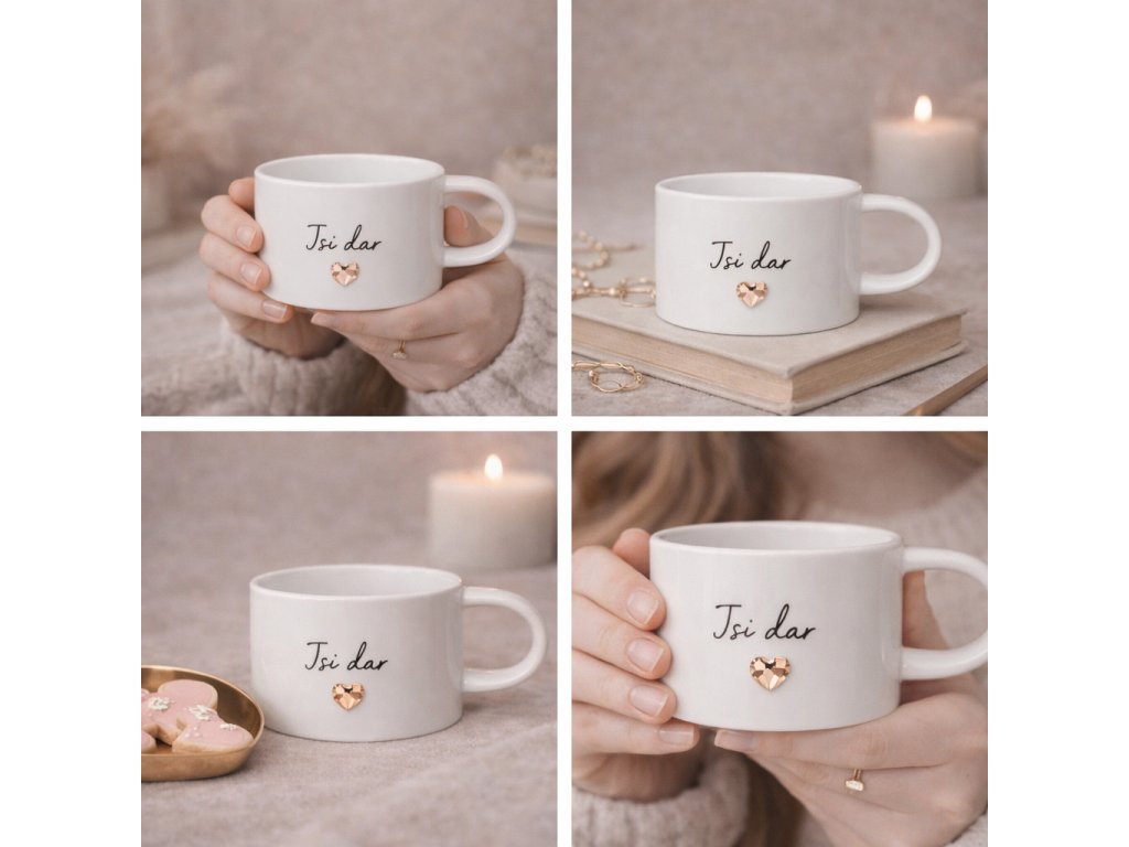 Hrnek ,,Jsi výjimečná” Jednoduchá věta, která má sílu potěšit. Minimalistický hrnek s jemným písmem a zlatým srdcem je malou každodenní připomínkou sebevědomí a laskavosti k...