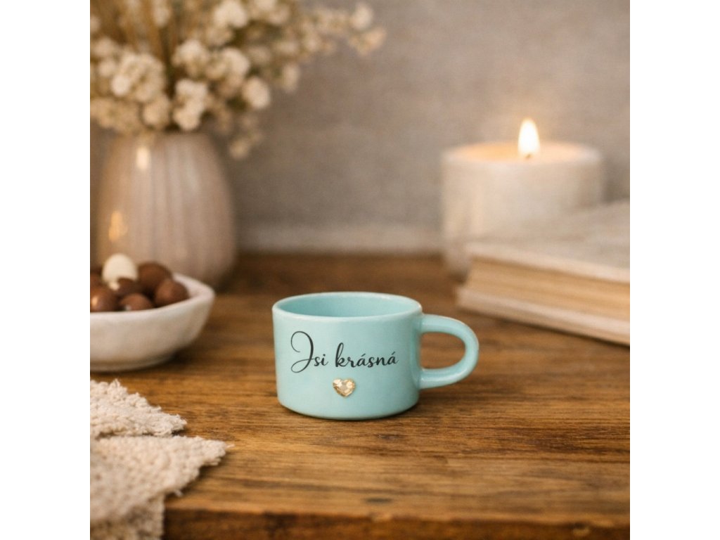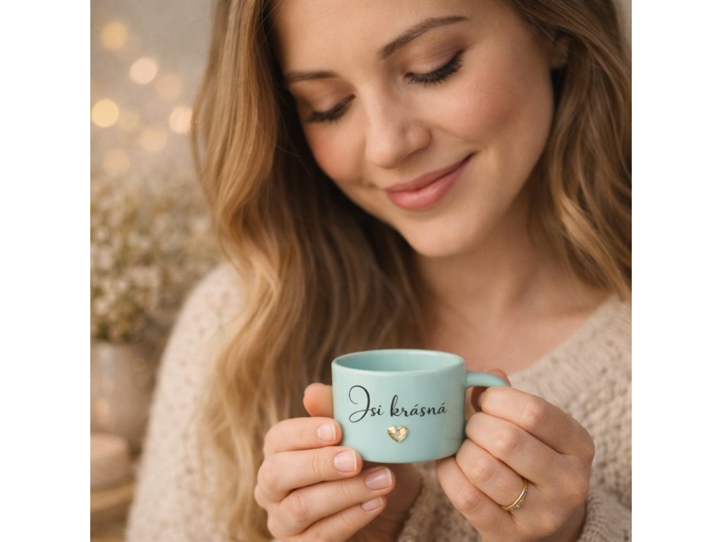 Hrnek ,,Buď hrdá na to, kým jsi” Protože jsi jedinečná.Tento hrnek není jen na kávu nebo čaj. Je to tichá připomínka vlastní hodnoty – každé ráno, každý den. Jemný rukopis...